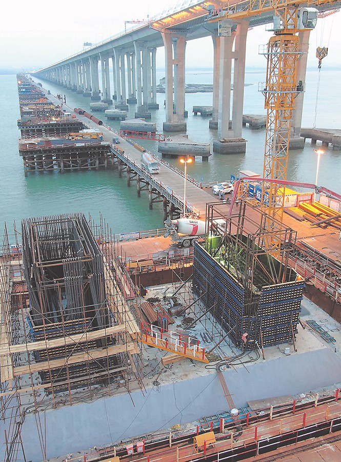 7月15日,新建福廈鐵路泉州灣跨海大橋主墩首節(jié)塔柱澆筑,標志著泉州灣跨海大橋進入塔柱施工階段。塔柱作為跨海大橋的重要施工環(huán)節(jié),其高度為160.245米,預計2020年5月完成封頂。