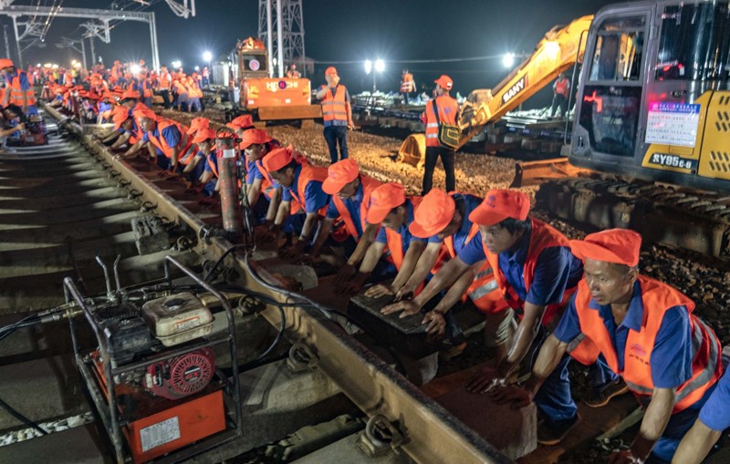 7月19日7時許,經過中鐵十一局及相關參建單位1000多名建設者連續8小時奮戰,昌贛高鐵引入南昌鐵路樞紐(向莆鐵路)下行線施工順利完成,昌贛高鐵正式接入“八縱八橫”國家高鐵網絡。