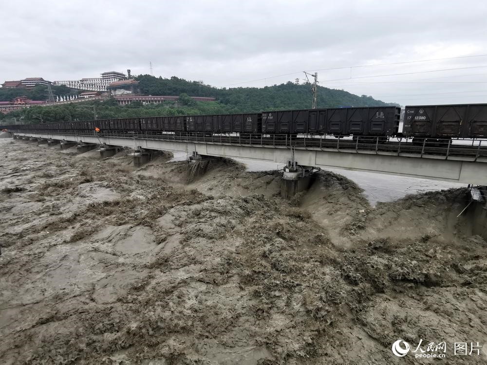 2020年8月17日13時許,四川省綿陽市圣水寺附近,總重量超8100噸的重載貨物列車被機車推上大橋,應對洪峰過境。這是涪江鐵路大橋繼2018年后再次采取“重車壓梁”的方式,確保橋梁安全抵抗洪峰過境。