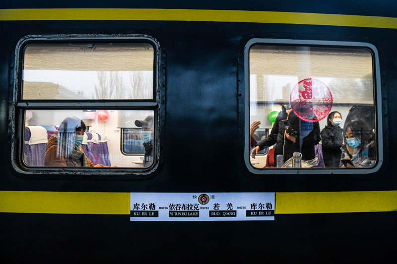 12月9日,在新疆庫爾勒站,旅客剛剛登上K9756次客運列車。