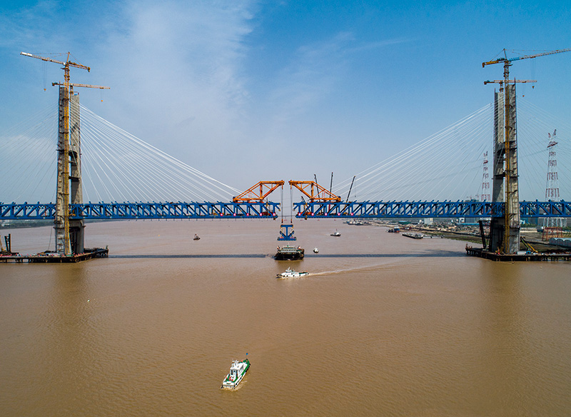 4月17日,在浙江臺州的杭紹臺鐵路建設施工現場,隨著最后一片鋼梁吊裝完成,杭紹臺鐵路控制性工程椒江特大橋順利合龍。杭紹臺鐵路是我國首條民營資本控股的高速鐵路項目。該線路連接浙江杭州、紹興和臺州三地,線路設計時速350公里。