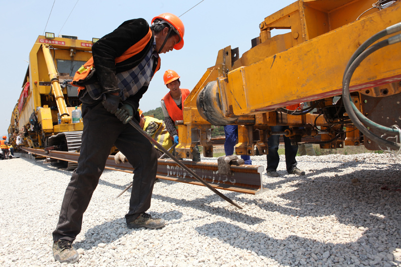 中老鐵路國內段鋪軌施工忙