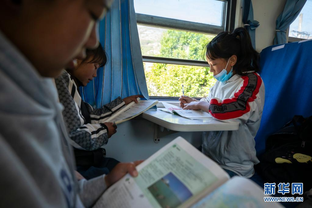 在這列特別的“校車”上,學生們讀書、聊天、玩耍,“慢火車”承載著他們的夢想,帶著他們向著未來前行。
