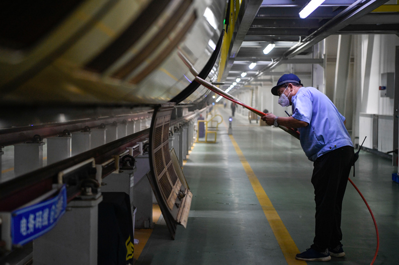 7月10日,銀川動車運(yùn)用所工作人員對列車牽引變流器散熱格柵進(jìn)行清潔。