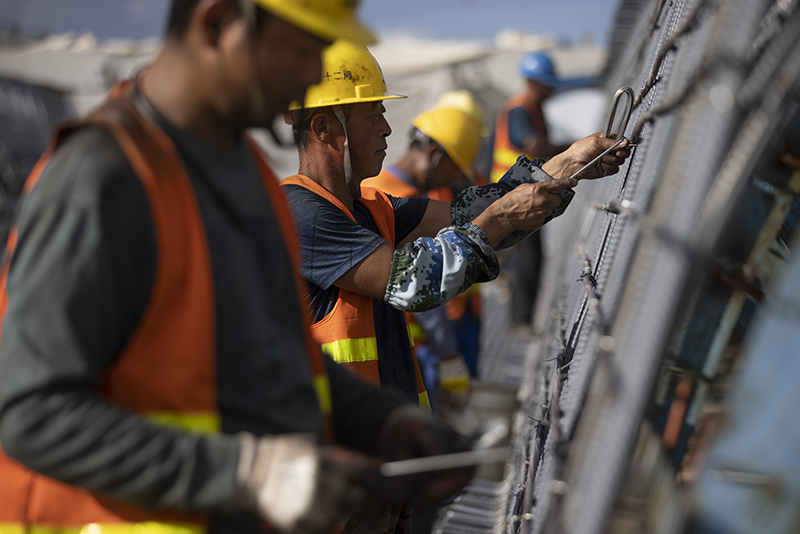 工人在哈伊高鐵鐵伊段先行工程跨S207省道2號特大橋
