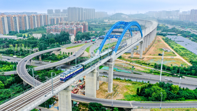 9月15日,濟(南)萊(蕪)高鐵聯調聯試正式啟動,由中鐵十局、中建八局承建的濟萊高鐵5座新建站房也已進入裝飾裝修階段。濟萊高鐵是山東濟南“米字型”高鐵網的重要組成部分,設計時速350公里。圖為檢測列車駛過濟萊高鐵歷城站特大橋。