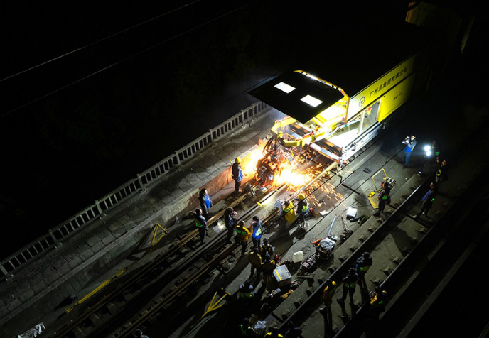 11月2日,在京廣高鐵株洲西至衡山西區(qū)間,廣鐵集團(tuán)廣州工務(wù)大修段衡陽焊軌車間工人在不影響線路運(yùn)行的情況下,開始對(duì)京廣高鐵鋼軌進(jìn)行一體化換軌施工。據(jù)了解,此次施工共需更換鋼軌20公里,舊鋼軌為2009年建成,部分鋼軌磨耗值接近大修標(biāo)準(zhǔn),影響運(yùn)輸安全。本次施工預(yù)計(jì)12月初完成。
