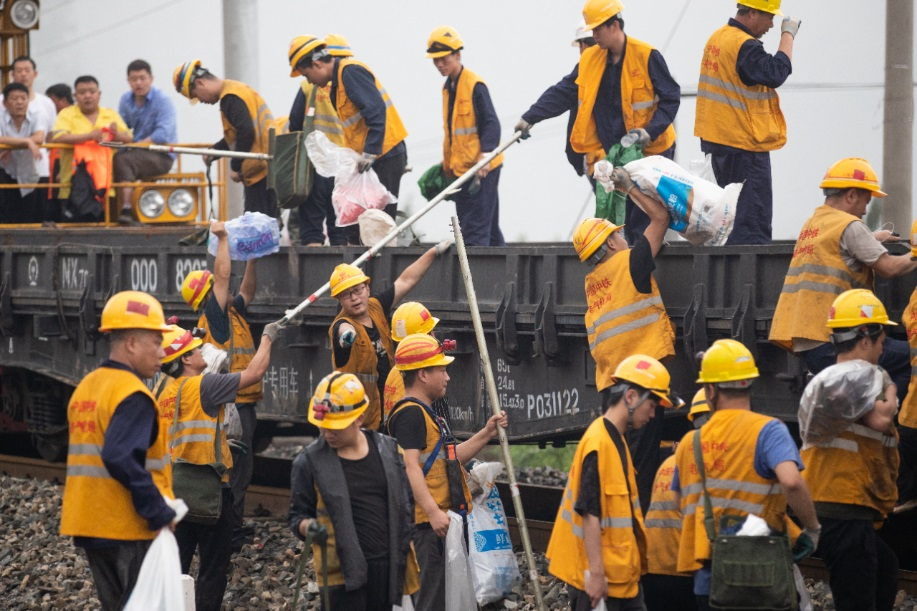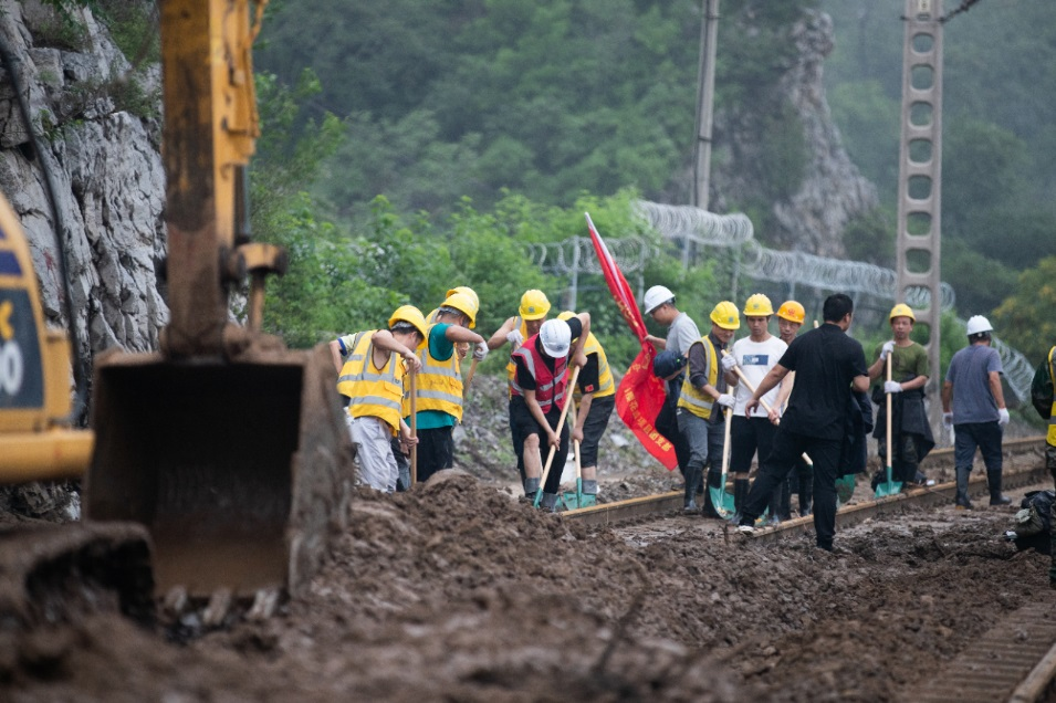 京津冀地區(qū)持續(xù)強(qiáng)降雨,導(dǎo)致北京豐臺(tái)至沙城鐵路(豐沙線)受到嚴(yán)重?fù)p毀。連日來(lái),工作人員冒雨在現(xiàn)場(chǎng)加班加點(diǎn)搶修、清淤。