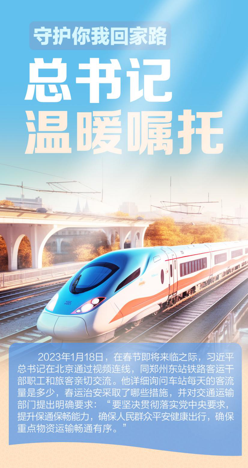 “春運(yùn)是關(guān)系人民群眾切身利益、關(guān)系經(jīng)濟(jì)發(fā)展和社會穩(wěn)定的一件大事。”2023年春節(jié)前夕,習(xí)近平總書記通過視頻連線鄭州東站鐵路客運(yùn)干部職工和旅客時(shí),特別強(qiáng)調(diào)要做好春運(yùn)工作。