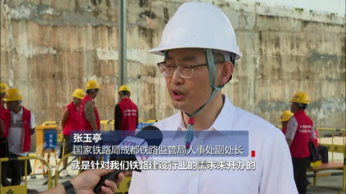 國家鐵路局成都鐵路監管局人事處副處長張玉亭:“我們的針對性非常強,就是針對鐵路建設行業的需求來開辦。舉辦培訓班的目的主要是提高專業性,特別是提高產業工人的安全生產意識。”