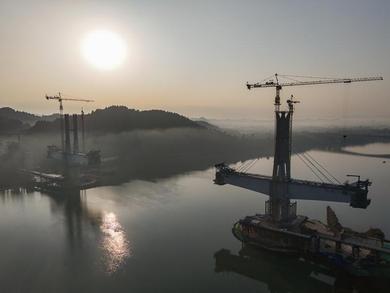 位于四川省南充市的成達萬高鐵嘉陵江特大橋。