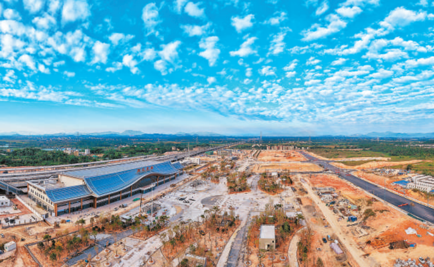圖為廣湛高鐵陽江北站建設(shè)現(xiàn)場。
