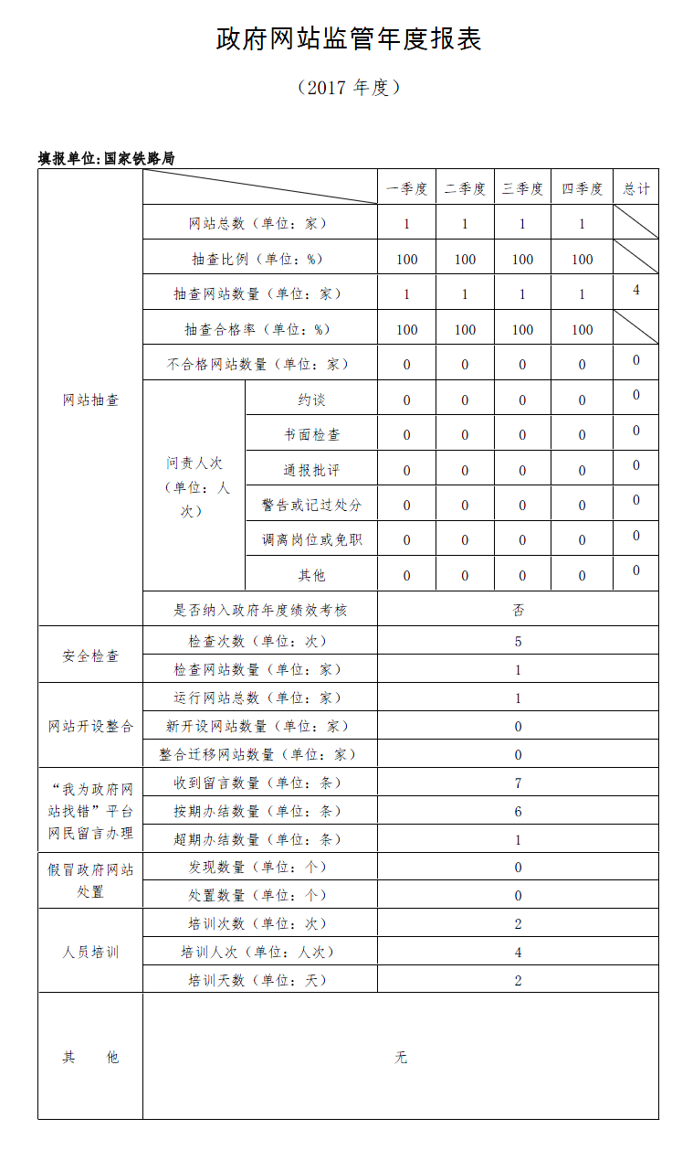 下一篇:國家鐵路局政府網站工作年度報表(2017)