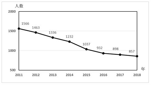 “十二五”以來鐵路交通事故死亡人數變化趨勢圖