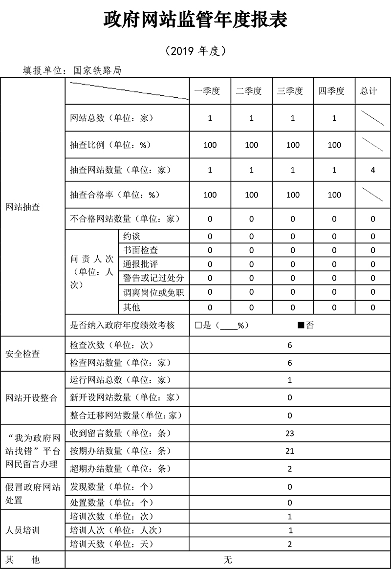 上一篇:國家鐵路局政府網(wǎng)站工作年度報表(2019)