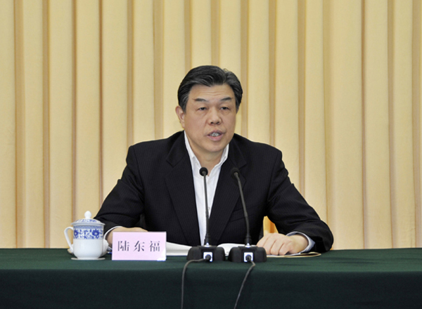 (圖為陸東福代表局黨組對教育實(shí)踐活動(dòng)情況作總結(jié)講話。)