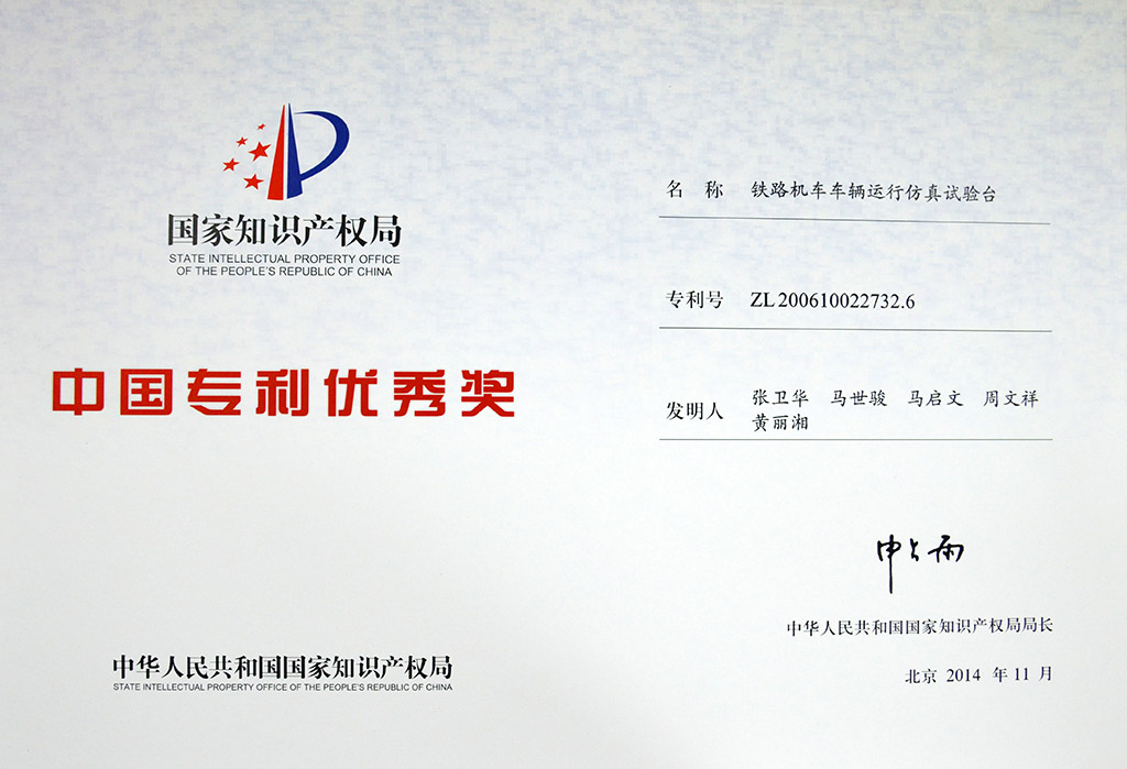 “鐵路機車車輛運行仿真試驗臺”專利實現了高速列車動力學性能驗證、參數優化試驗和故障工況的安全評估,服務于高速列車技術創新,專利權人為西南交通大學。