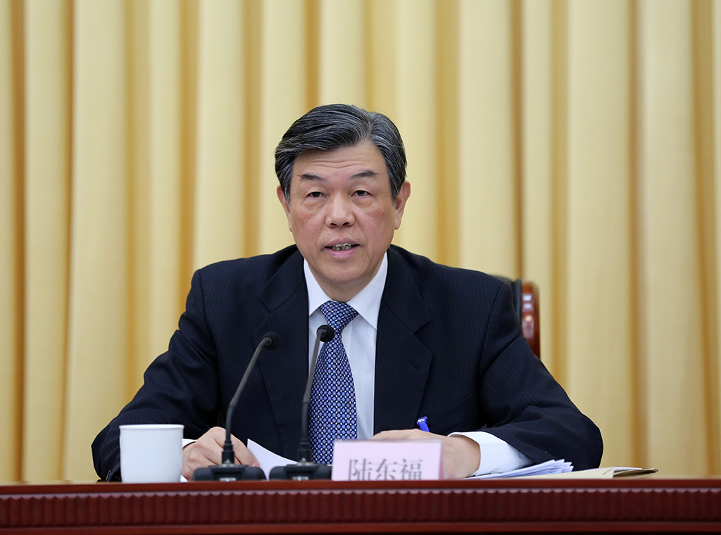 圖為國家鐵路局黨組書記、局長陸東福作工作報告。