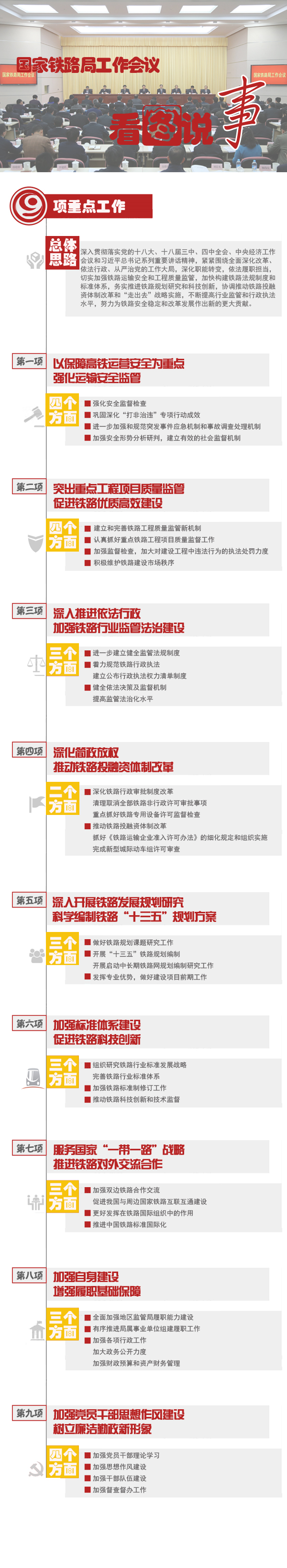 在1月8日召開的國家鐵路局工作會議上,國家鐵路局黨組書記、局長陸東福強調,今年要抓好九項重點工作:
