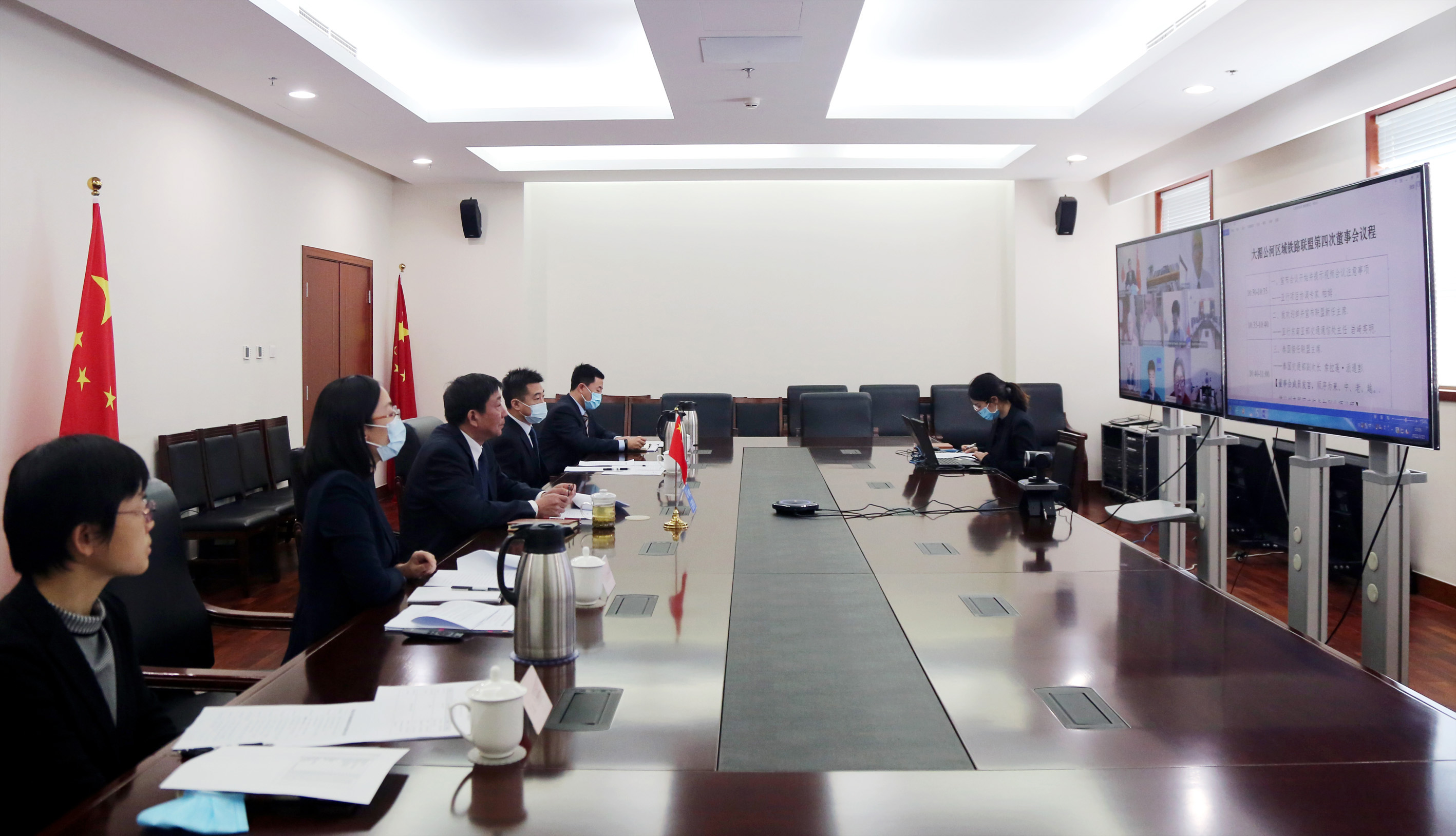 國家鐵路局副局長劉克強(左三)出席大湄公河區域鐵路聯盟第四次董事會視頻會議