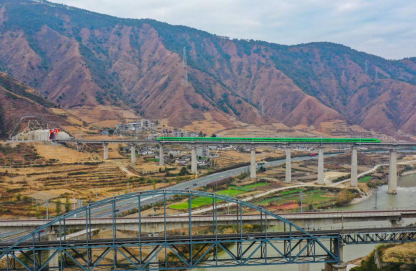 12月26日8時05分,C57次“綠巨人”復興號動車組列車從成都火車南站緩緩啟動、駛往西昌,這標志著新成昆鐵路(成昆鐵路擴能改造工程)的最后一段——峨眉至冕寧段開通投運,至此,全長915公里的新成昆鐵路實現全線通車運營。
