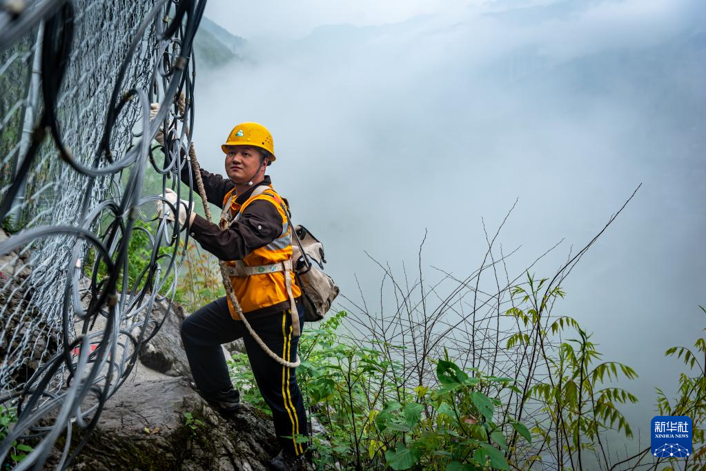 伴隨汛期到來,橋梁、隧道里程占總長74%的宜萬鐵路防洪壓力增大。劉可的主要任務是監控宜萬鐵路野三關至長陽區間的危巖落石風險。時而沿著峭壁攀爬而上,時而握緊安全繩順山崖而下……為了全面掌握危石狀態、保障行車設備安全,劉可要對照山體上13塊危石所處位置,一處不漏地檢查記錄。