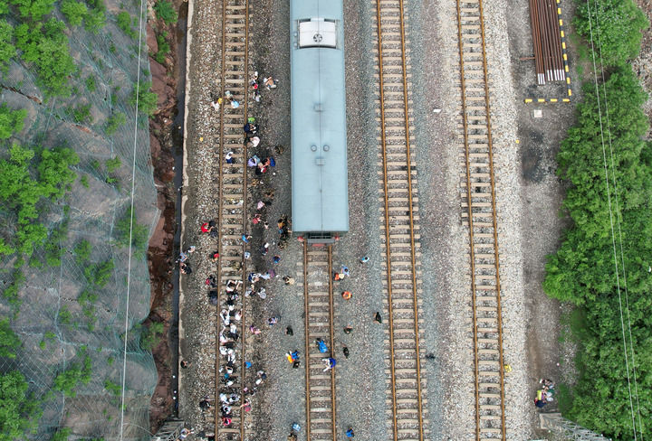 8月1日晚,徒步走了四個小時的救援隊終于找到了被困的K396次列車,乘客開始被分批轉移。前來救援的包頭客運段青島車隊隊長王勇回憶,這段需要徒步的路十分艱險,路基已被沖塌,只剩兩根鋼軌帶著幾個石枕。“說心里話,心慌得不得了,因為底下一看要掉進去肯定沒有生命跡象。山洞里淤泥一尺多,走著走著鞋就找不著了,伸進胳膊再去把鞋揪出來,套在腳上。”