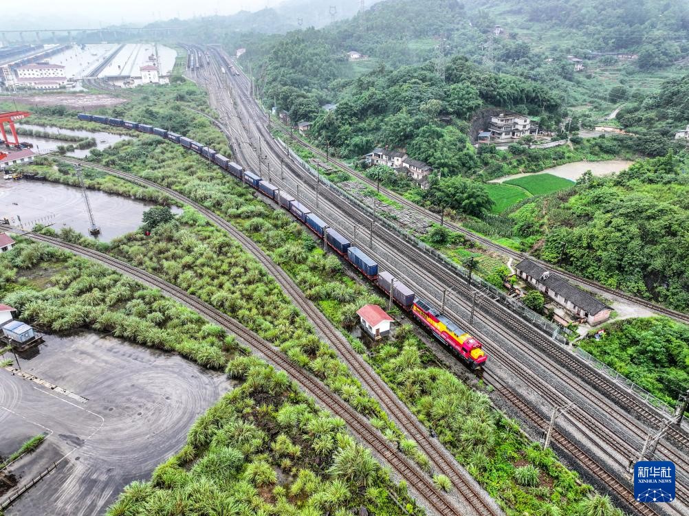 西部陸海新通道中老泰馬跨境鐵路班列在重慶江津小南埡站等待發車。