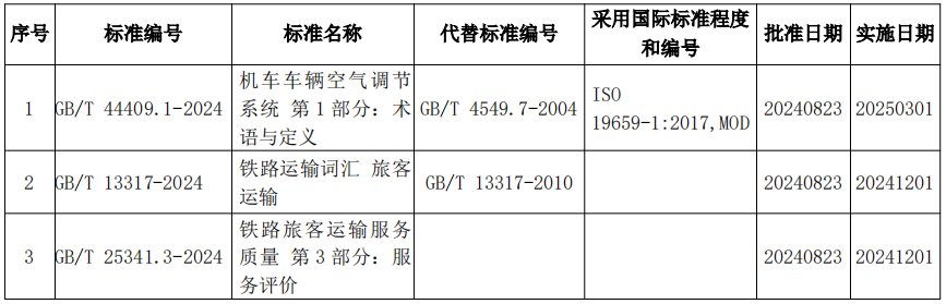 《機車車輛空氣調(diào)節(jié)系統(tǒng) 第1部分:術(shù)語與定義》等3項鐵路國家標(biāo)準(zhǔn)正式發(fā)布