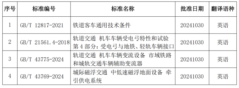《鐵道客車通用技術條件》等4項鐵路國家標準外文譯本正式發布