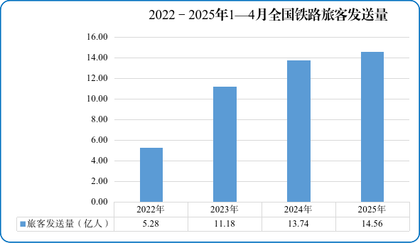 圖1 2022—2025年1—4月全國(guó)鐵路旅客發(fā)送量