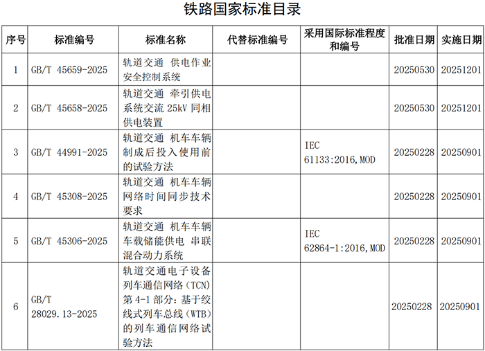 《軌道交通 供電作業安全控制系統》等6項鐵路國家標準正式發布