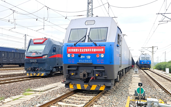 8月5日,滿載3614噸煤炭的83277次列車從陜西靖邊東站緩緩駛出,一路南下開往湖北襄州北站,標志著浩吉(內蒙古浩勒報吉至江西吉安)鐵路累計發運貨物列車突破8萬列。