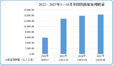 圖2 2022—2025年1—10月全國(guó)鐵路旅客周轉(zhuǎn)量