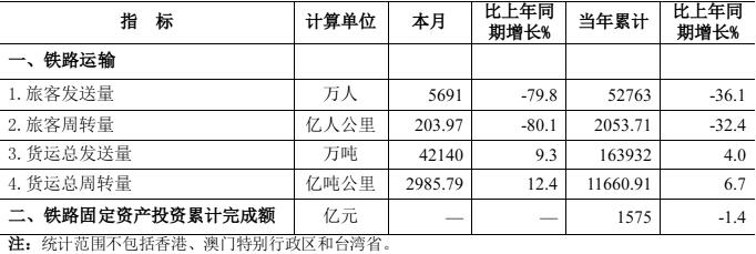 2022年4月份全國(guó)鐵路主要指標(biāo)完成情況