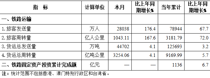 2023年3月份全國(guó)鐵路主要指標(biāo)完成情況