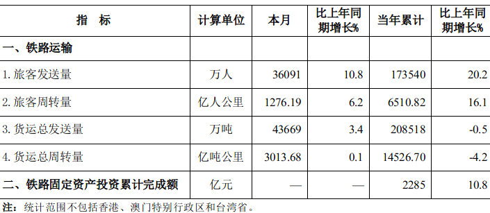 2024年5月份全國鐵路主要指標完成情況