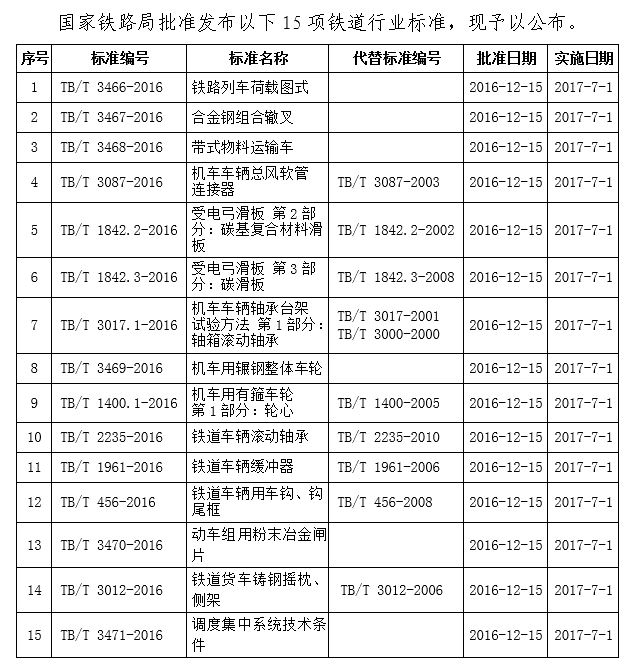鐵路技術標準(2016年第8批)