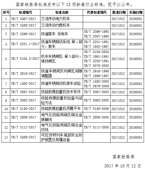 鐵路技術標準(2017年第4批)