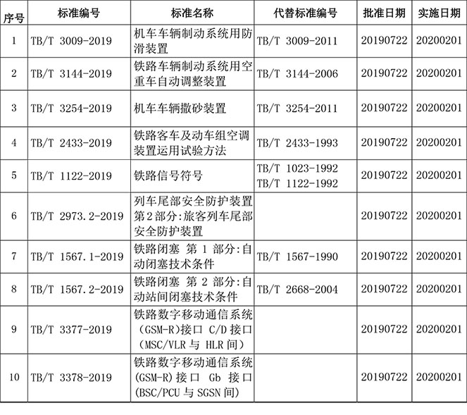 國家鐵路局批準發布以下10項鐵道行業標準,現予以公布。標準由中國鐵道出版社出版發行。