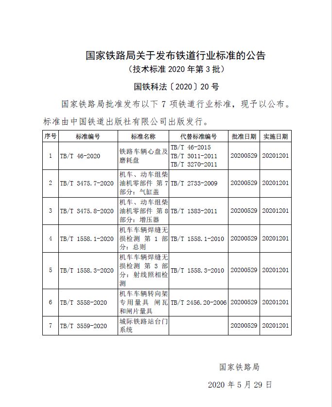 鐵路技術標準(2020年第3批)