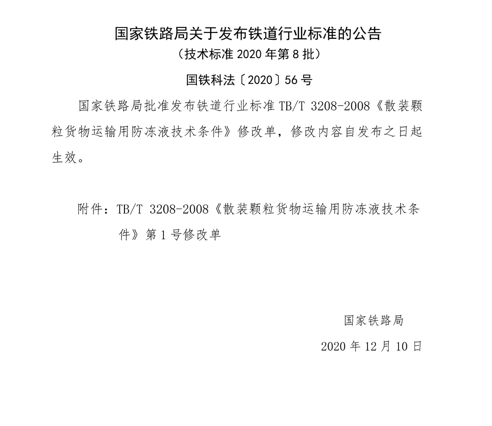 國家鐵路局關于發布鐵道行業標準的公告(技術標準2020年第8批)