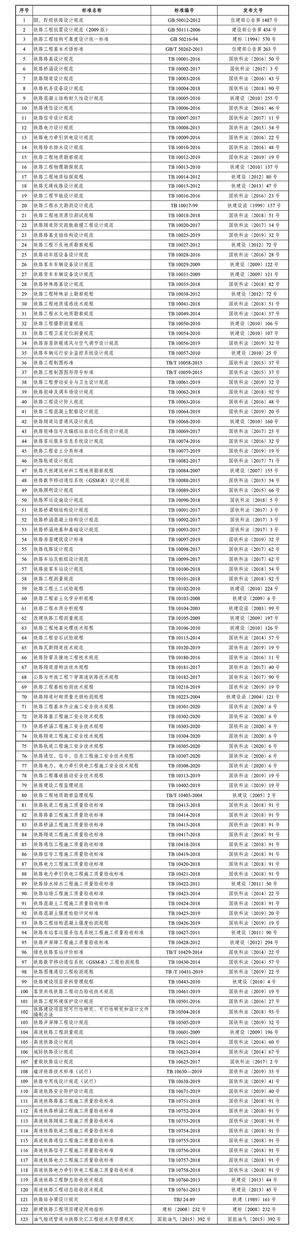 鐵路工程建設(shè)標(biāo)準(zhǔn)目錄(截至2020年3月31日)