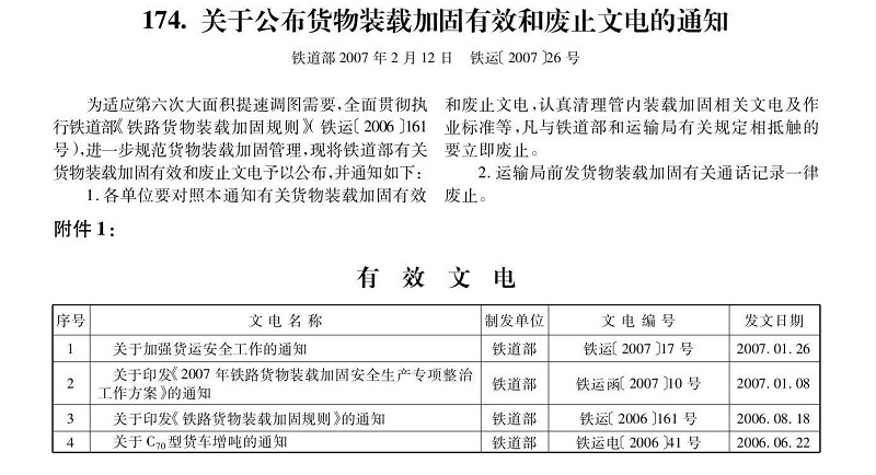 《關(guān)于公布貨物裝載加固有效和廢止文電的通知》