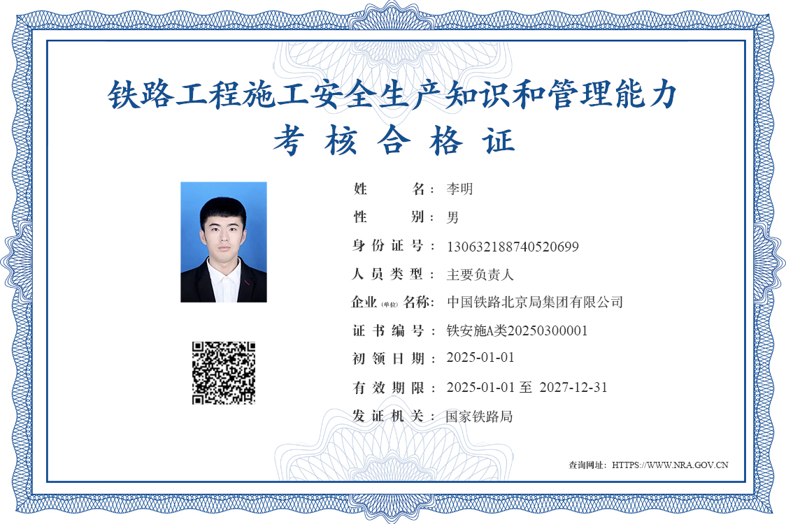二、考核合格證為電子證書,由鐵路安管人員安全能力考核信息管理平臺自動生成,在全國范圍內有效。可通過掃描二維碼或登錄查詢網址核驗證書信息。