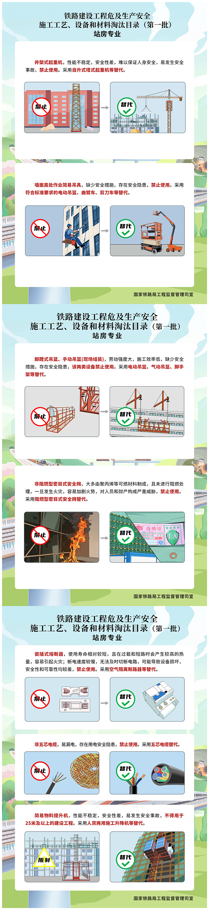 《鐵路建設工程危及生產安全施工工藝、設備和材料淘汰目錄(第一批)》宣傳海報