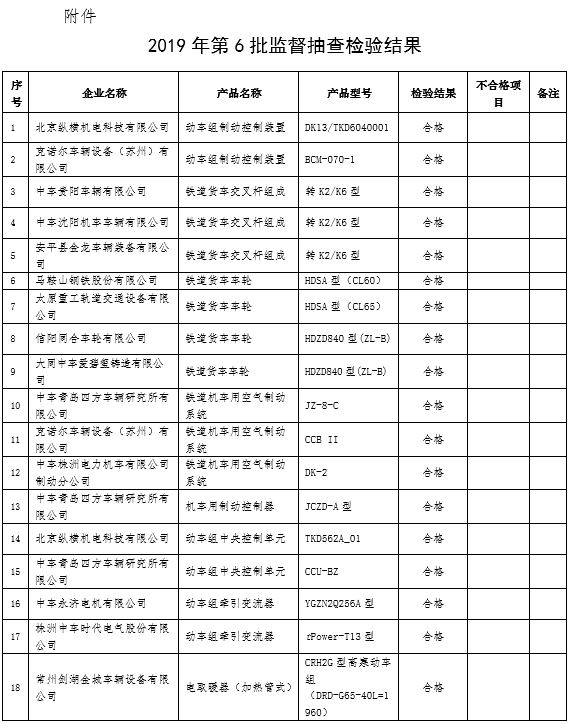 根據《鐵路專用產品質量監督抽查管理辦法》(國鐵設備監﹝2017﹞79號),現將2019年第6批鐵路專用產品質量監督抽查情況通報如下: