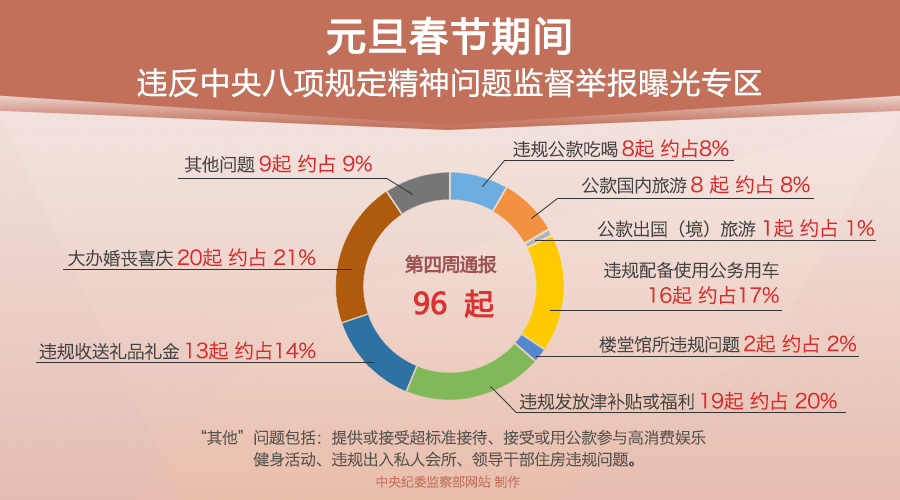 每周通報:各級紀檢監察機關查處96起違反中央八項規定精神問題