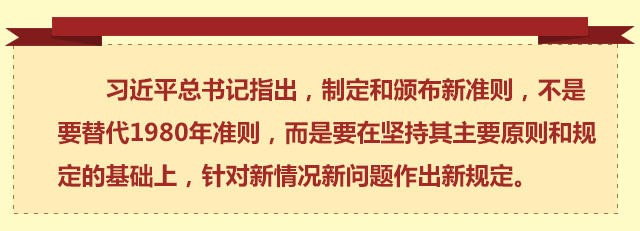 堅持集體領導、反對個人專斷,維護黨的集中統一、嚴格遵守黨的紀律,要講真話、言行一致,接受黨和群眾的監督、不準搞特權……1980年準則的主要原則和規定得到進一步重申。新老準則相互聯系、一脈相承,都是當前和今后一個時期黨內政治生活所必須遵循的。