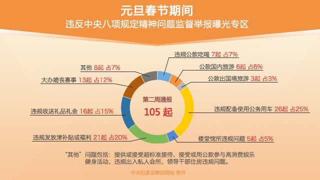 | 每周通報:各級紀檢監(jiān)察機關(guān)查處105起違反中央八項規(guī)定精神問題 | |